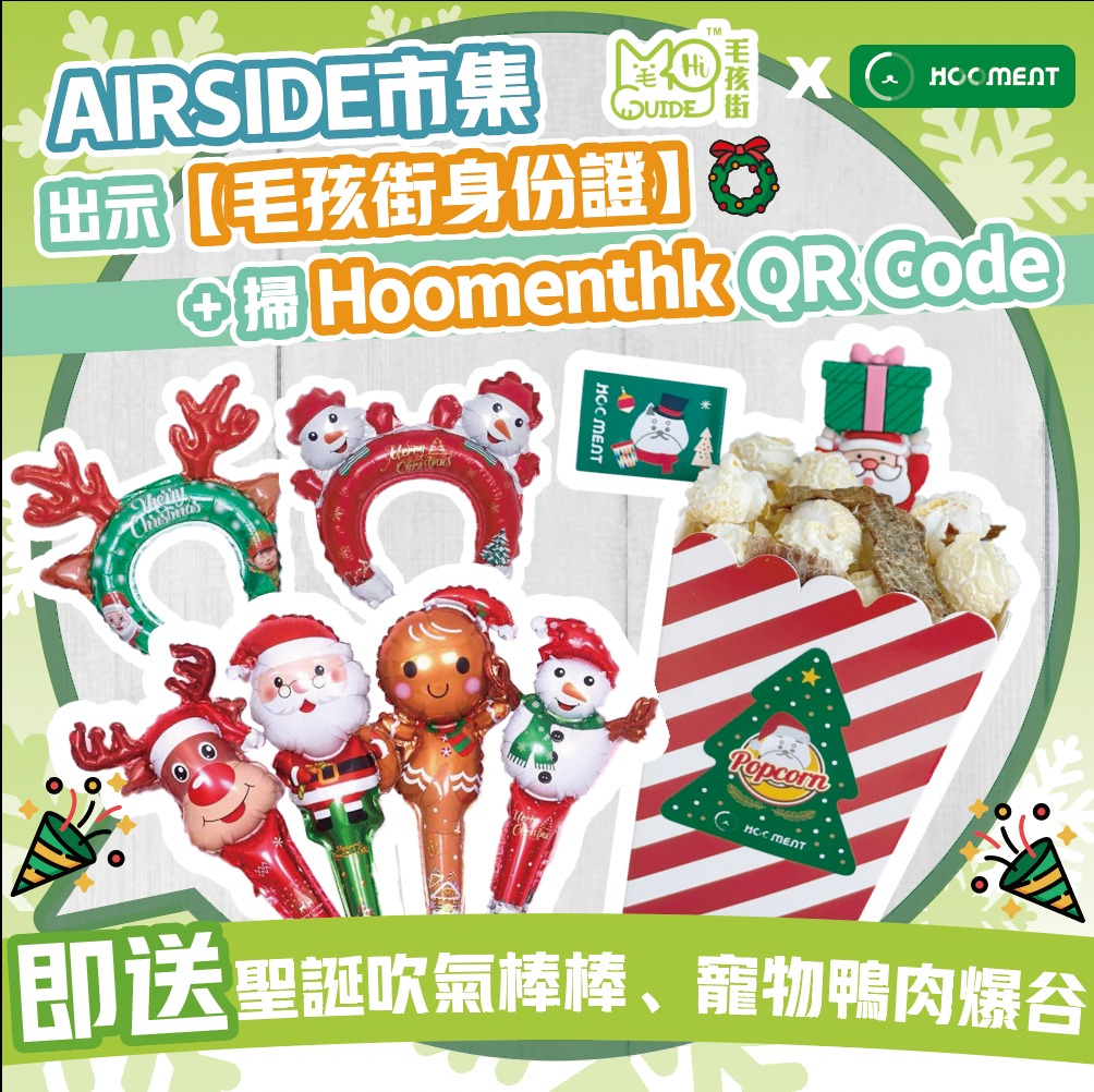聖誕節期間在AIRSIDE市集 免費送 寵物鴨肉爆谷🍿+聖誕吹氣棒棒🥖 (已滿額)