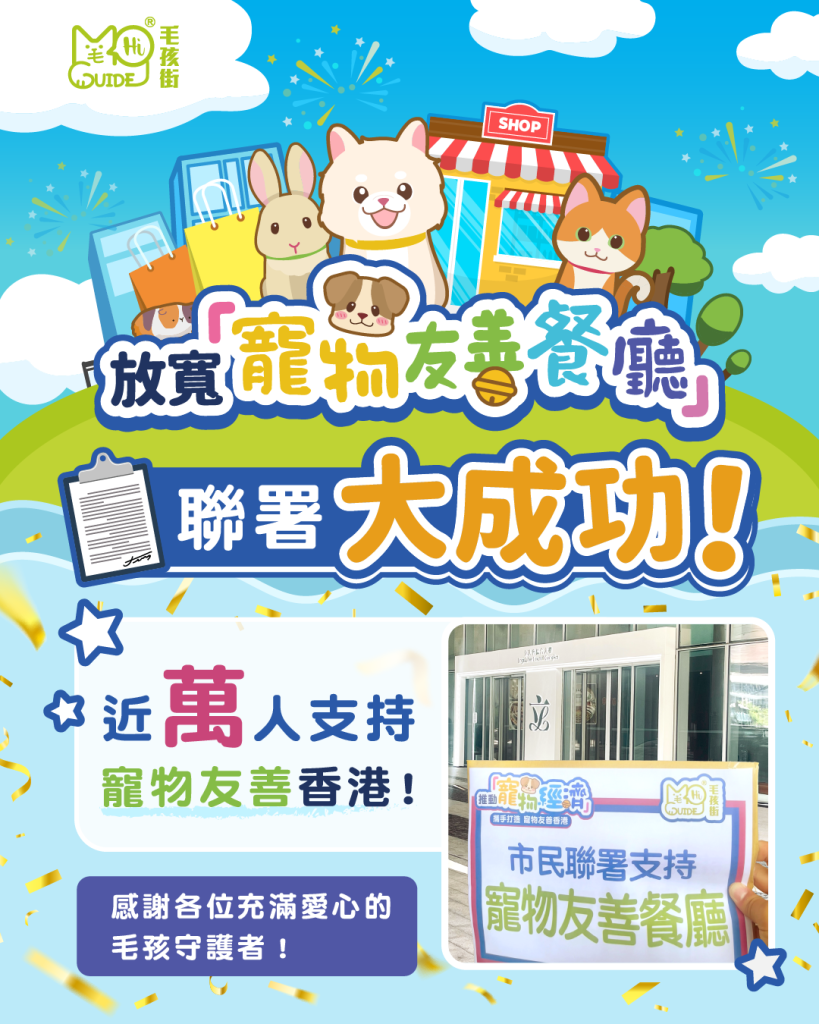 我地在短短兩星期內,集結左 🎉近一萬位市民🎉+餐廳🏡+寵物美容💇♀+舞蹈學校🕺+泰拳瑜伽學校🧘等等…各行各業的強大支持,推動香港寵物友善,共同為「寵物經濟」及寵物友善餐廳政策發聲!希望香港正向更寵物友善的未來邁進!💪