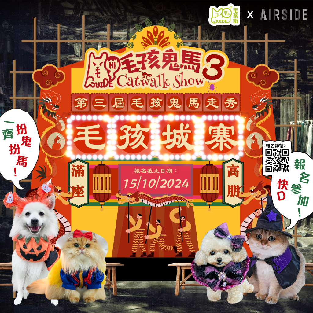 👻萬聖節又嚟啦😺🐶👻!準備好迎接一個充滿驚喜和刺激既節日了嗎?上屆【毛孩鬼馬Catwalk Show2】精彩絕倫,而今屆我地將在AIRSIDE攜手再度展現毛孩們既魅力,仲特別融入了“毛孩寨城- 戱棚“主題,等你同你既毛孩一齊黎場冒險演出吧!